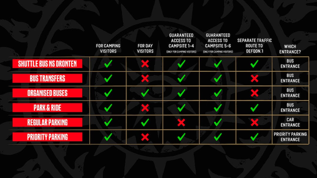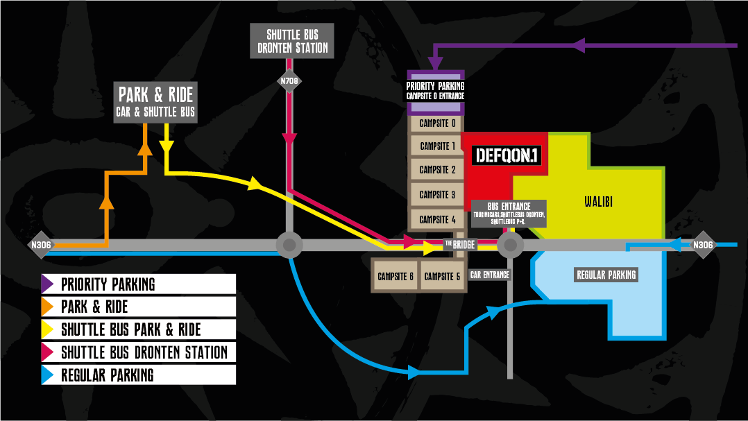 Going to Defqon.1 by car? Then this is the option for you! Park your car on our off-site parking at a reduced price for the entire weekend. A 5 km shuttle bus drive will take you to and from the Holy Grounds, avoiding all traffic jams. Read more about the perks of using our Park + Ride via the button below.